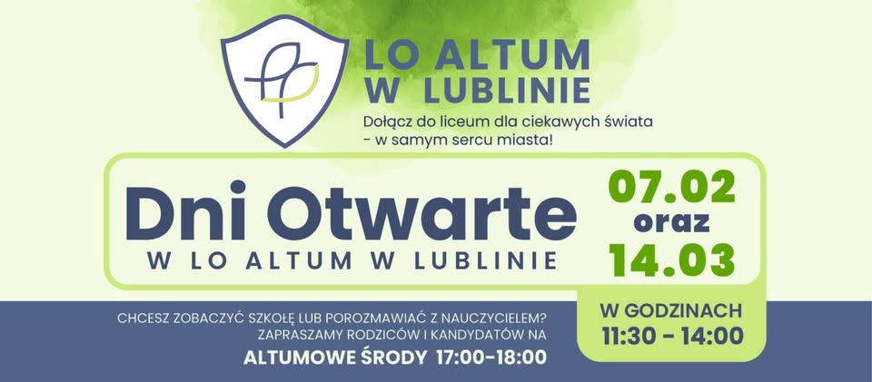 Dzień Otwarty w Liceum ALTUM Zastanawiasz się, jaką szkołę średnią wybrać?Chcesz poznać atmosferę szkoły, porozmawiać